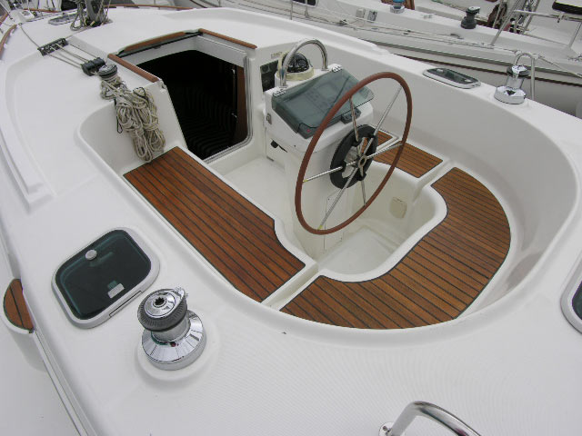An extremely well laid out deck with a safe and dry center cockpit. The aft deck is well laid out for extra seating, and access to the boat from the stern.