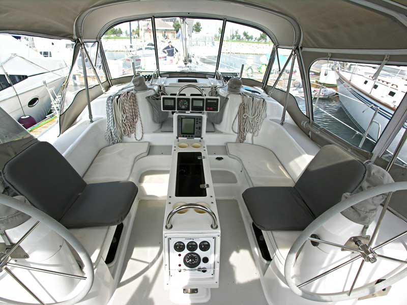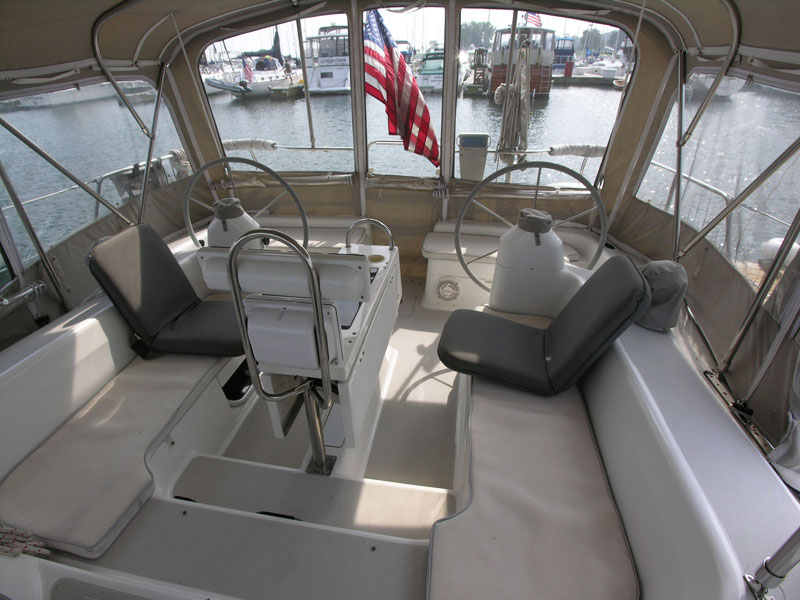 Roomy and spacious cockpit with twin helm wheels.