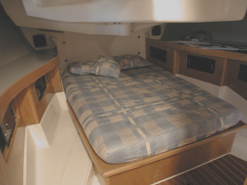 width vee berth forward with lots of room for two adults.