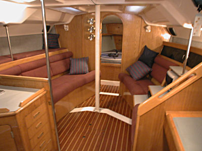 lock and storage. The salon is next aft with port and starboard settees
