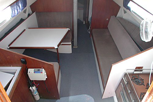 converts to a double) and a full-length settee to starboard which