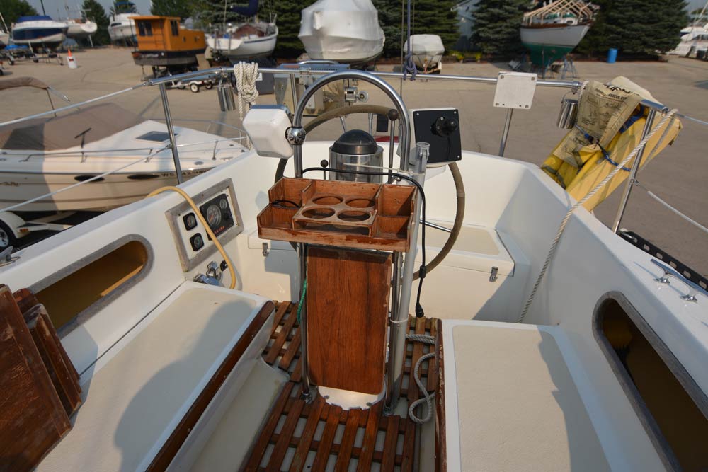 The overall condition of the boat will strike you even before you enter. The hull looks very good, and the bottom is ready to launch. The deck and cockpit are all in very good condition. The T-shaped cockpit is