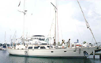 The hull was completely professionally refinished with Awlgrip in 1997. The bottom was also completely refinished and epoxy coated in 1997. She has a dodger, cockpit awning, teak deck, fresh and saltwater washdown system, electric dinghy davits, 6-person 13' Projet dinghy with 50 hp Yamaha, electric windlass, anchors, bow pulpit, stern pulpit, double lifelines, electric search light, spreader lights, navigation lights, lifejackets and life rings, U.S. Coast Guard safety package.