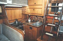 table inbetween. The galley is aft to starboard.