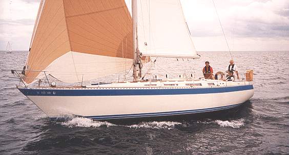 Sails: mainsail (Sobstat, new 1998, dacron, excellent condition) w/ two full batten and two reefs and sail cover (new 1999); 155% furling headsail (Doyle, brand new 2000, dacron); 155% genoa - very good condition Kevlar (North); 140% genoa, Kevlar (North, new 1996) - very good condition; storm jib - excellent condition; cruising chute (blue) -good condition. All running rigging replaced within the past two years- much new in 2000, and most with spectra, high tech cord.